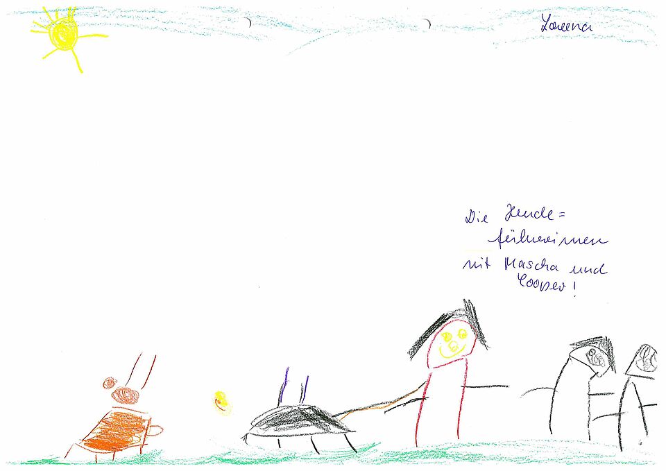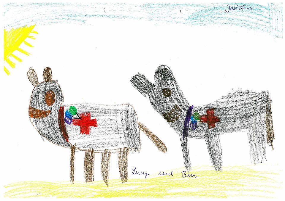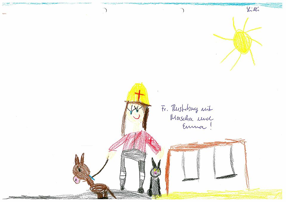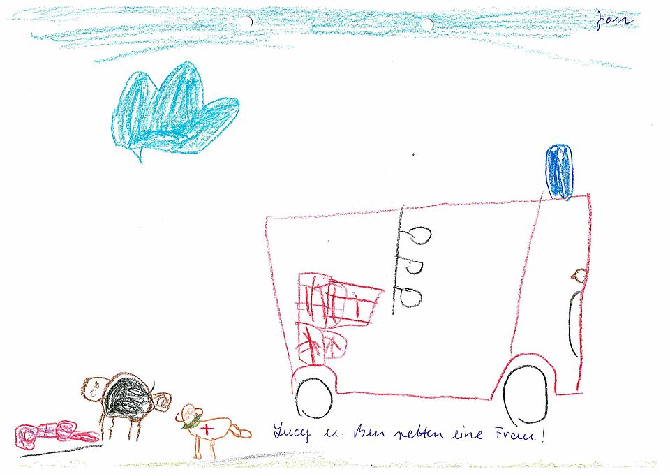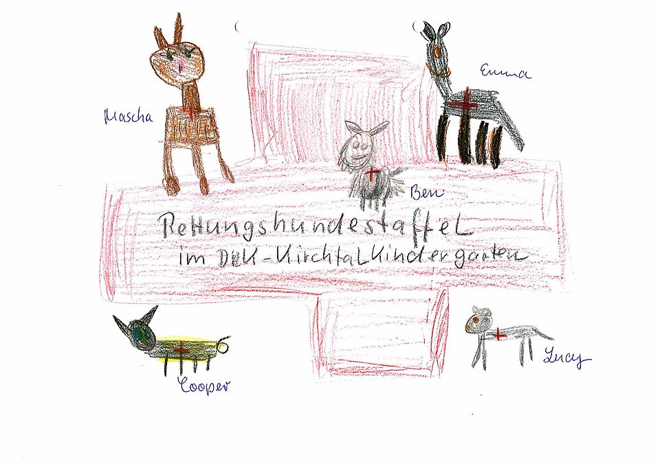 Zum Abschluss des Vormittags durften die Mädchen und Jungen das Einsatzauto besichtigen, bevor sich die Hundeführerinnen von glücklichen Kindern verabschiedeten. Als Erinnerung überreichten die Kinder den Rotkreuzlern selbstgemalte Bilder.
