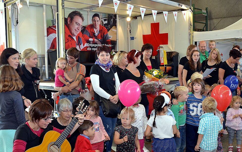 Das Internationale Rotkreuz-Museum Vogelsang für Menschen- und Völkerrecht war ebenso vertreten wie Jugendrotkreuz und Rotkreuz-Kindergärten. Letztere sorgten nicht nur mit Auftritten, sondern auch mit Kinderschminken, Karlo Klötzchen, einer Hüpfburg und Kistenklettern für Unterhaltung. Auch die Logistiker des Roten Kreuzes waren in Aktion und bekochten das mehrhundertköpfige Einweihungspublikum. Nachmittags gab es Kaffee und Kuchen. Dirk Rose: „Als wir am Abend Bilanz zogen, war das Etappenziel erreicht, Tausend Besucher begrüßen und bewirten zu können!“