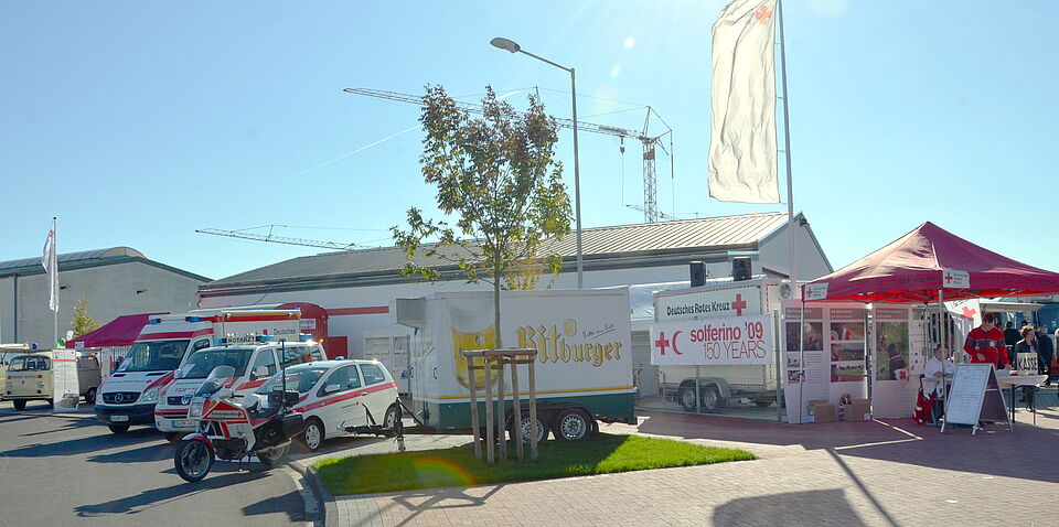 Das Gelände des Rotkreuz-Zentrums war von Fahrzeugen und Einsatzeinheiten des Roten Kreuzes umringt. Wasserwacht und Bergwacht des Roten Kreuzes waren ebenso vertreten wie der Blutspendedienst und die Westdeutsche Spenderzentrale, die den ganzen Sonntag über Knochenmark-Typisierungen durchführte.