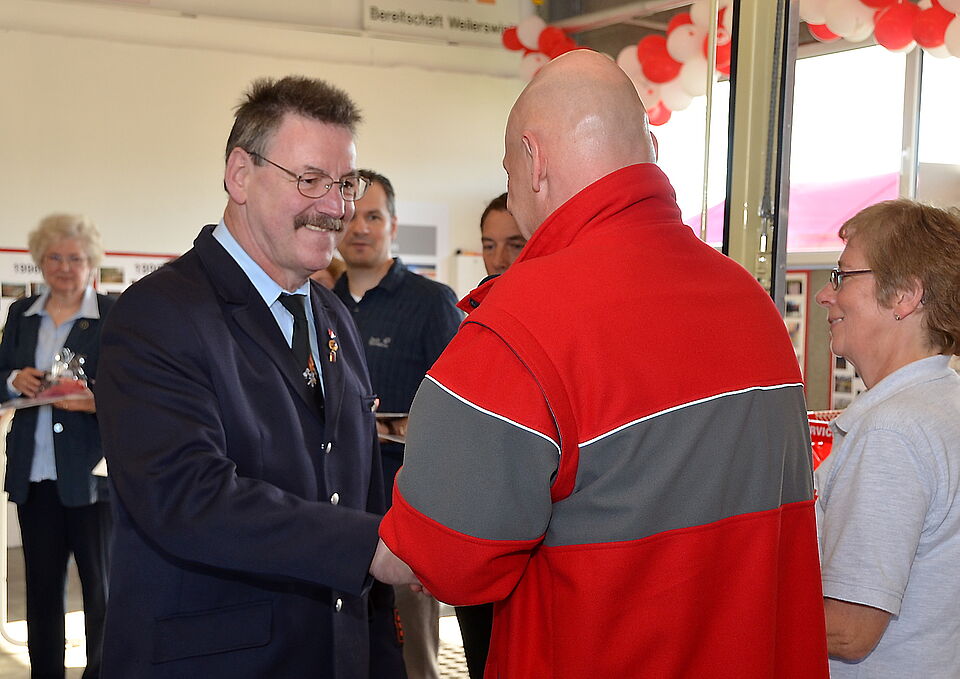 Bürgermeister Peter Schlösser unterstrich die große Verbundenheit zwischen Gemeindeverwaltung und Rotem Kreuz, die die „normalen“ Beziehungen zwischen einer Kommune und einer gemeindeeigenen Institution bei weitem übersteigen. So erkläre sich auch sein eigenes Engagement als Beisitzer im Rotkreuz-Vorstand. Und DRK-Vorsitzender Alex Eskes sei immerhin auch sein Beigeordneter und Kämmerer in der Gemeindeverwaltung Weilerswist.