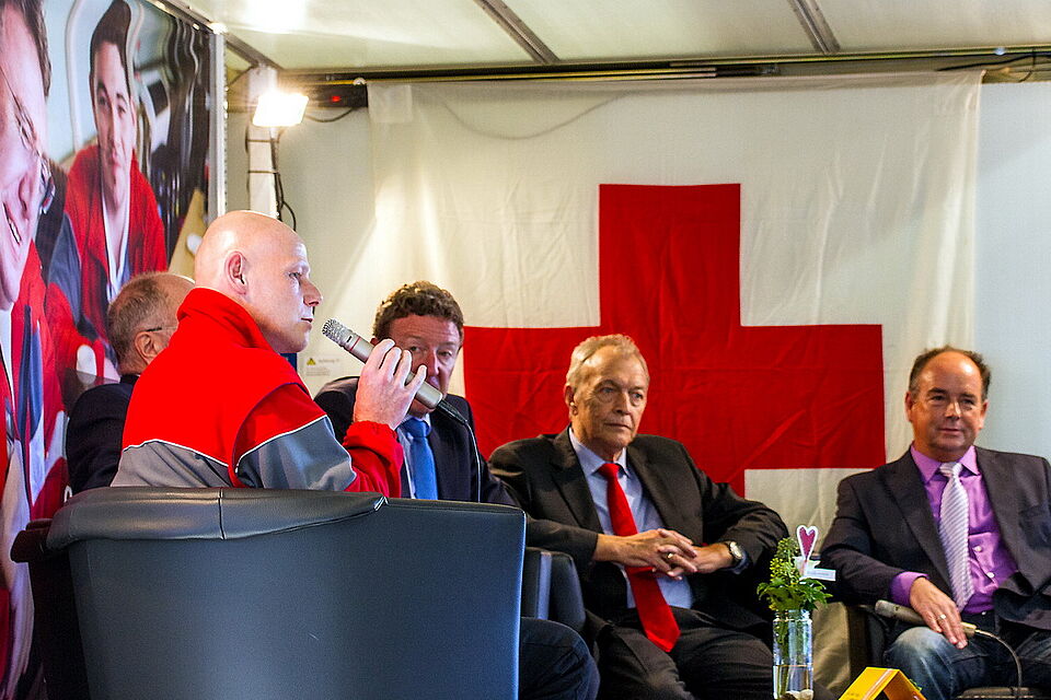 Eskes stellte sich auch mit dem bereits erwähnten Bürgermeister Peter Schlösser, dem Rotkreuz-Kreisvorsitzenden Erwin Doppelfeld, dem gebundenen Landrats-Vertreter Manfred Poth und dem Weilerswister Dorfvereinsvorsitzenden Richard Bertsch einer Podiumsdiskussion. Letzterer äußerte sich dabei nicht nur äußerst lobend über das Rote Kreuz als partnerschaftliches Mitglied im Kartell der 27 Weilerswister Ortsvereine.