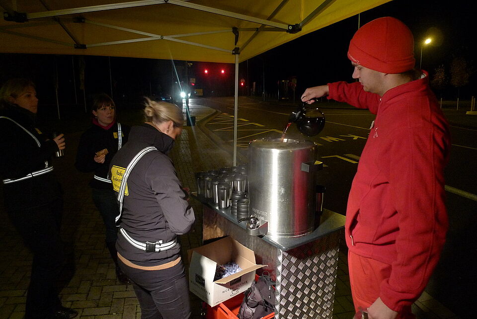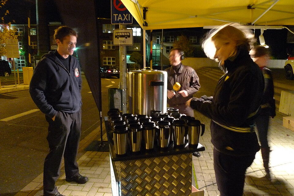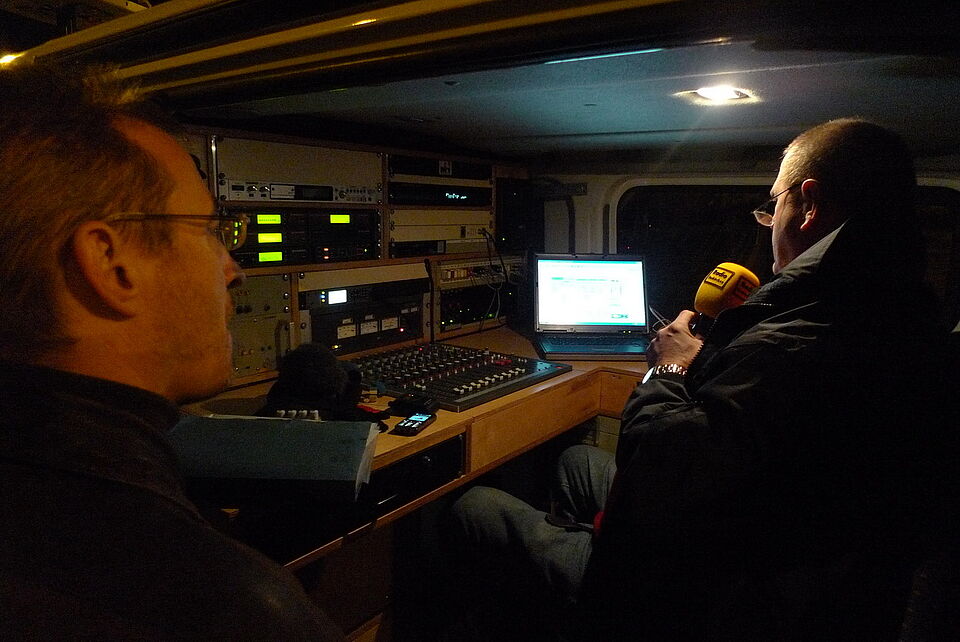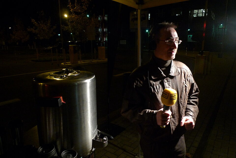 Auf dem Parkplatz der Zikkurat wartete Norbert Jeub, der Chefredakteur von Radio Euskichen, und sein Team mit dampfendem Kaffee auf die Besucher.