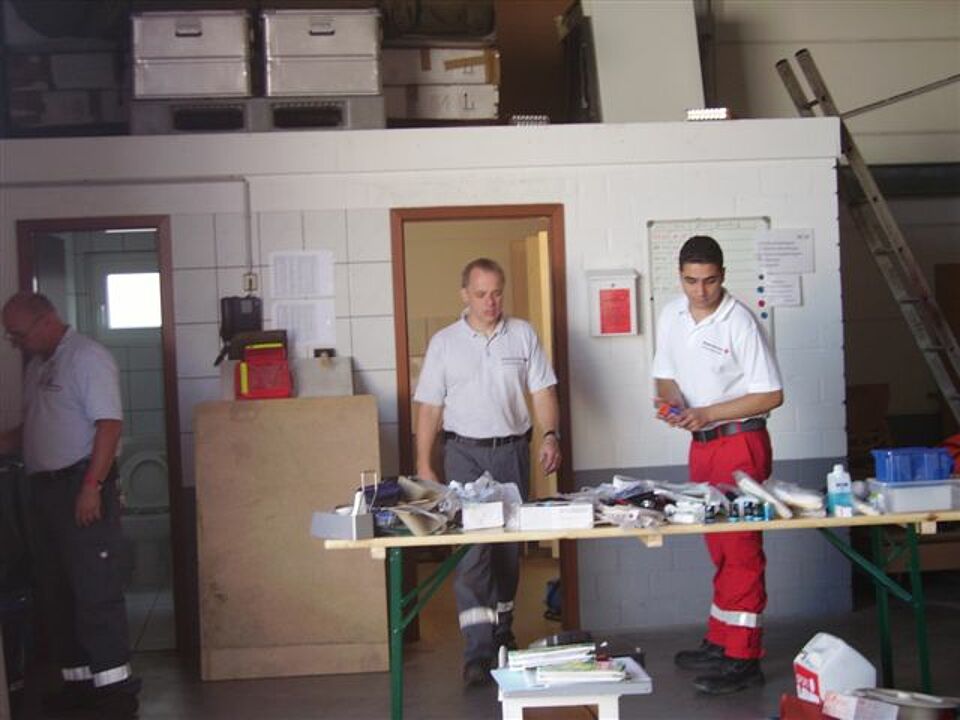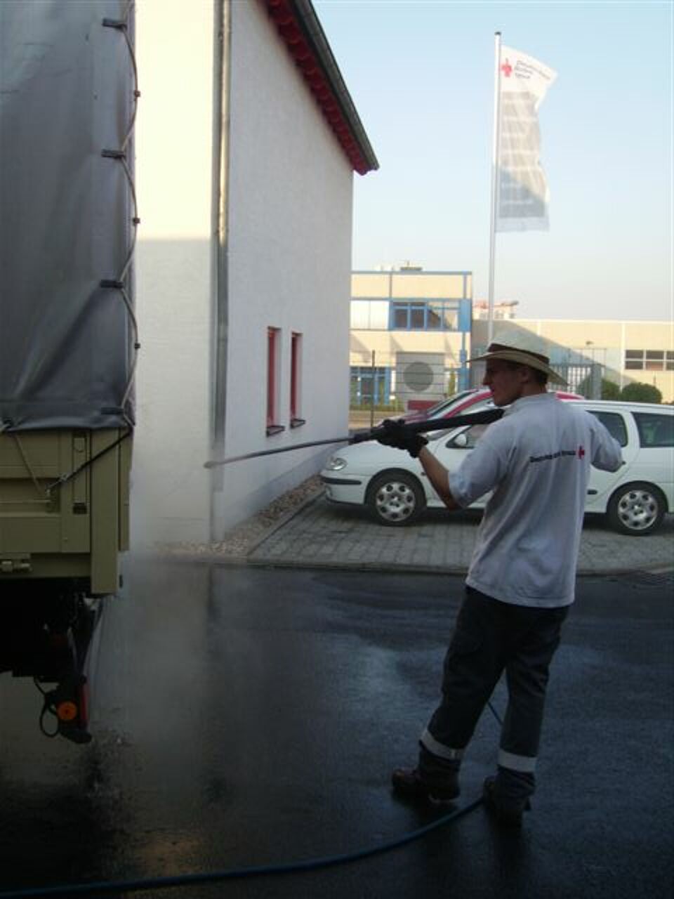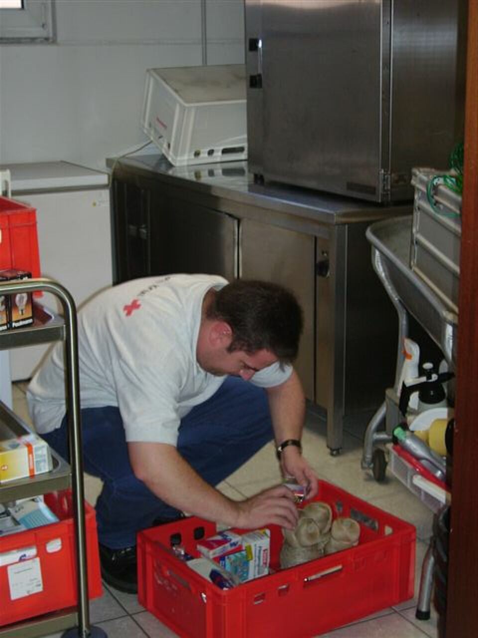 Bei wunderschönem sonnigem Wetter wurde der komplette Fuhrpark gereinigt, rettungsdienstliche Materialien wurden sortiert und auf ihre Haltbarkeit geprüft und die Helfer aus der Betreuungsgruppe brachten ihre Küche auf Vordermann, um alle Helfer für ihre Arbeit mit einem leckerem Brunch und ebenso leckerem Kuchen zu belohnen.