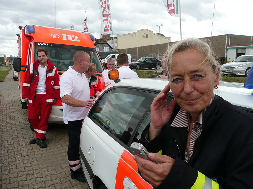 Bild DRK ZR | Nach der erfolgreichen Brandbekämpfung durch die Einsatzkräfte der Zülpicher Feuerwehr war die leitende Notärztin des Kreises Euskirchen, Dr. Gisela Neff, schon wieder entspannt.