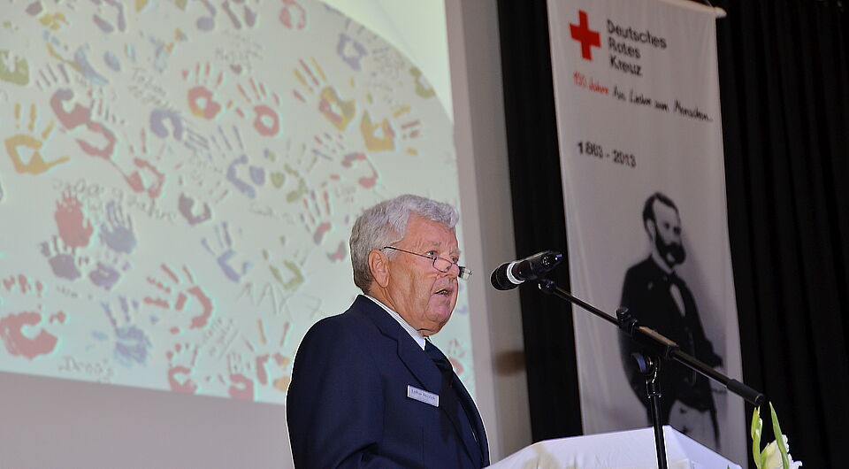 „Wir müssen immer und überall unsere Arbeit tun, wo sie notwendig ist“, sagte Schön, und bezeichnete seine Zuhörer und sich als Angehörige einer weltweiten Rotkreuz-Familie. Es sei an der Zeit, im wahrsten Sinne des Wortes die inneren und tatsächlichen Häuser zu verlassen und auf die Menschen zuzugehen, sagte Schön, der auch daran erinnerte, das bereits über 20 Angehörige der syrischen Rothalbmond-Gesellschaft im aktuellen Bürgerkrieg umgekommen sind. „Weil sie neutral sind, hält man sie willkürlich für Partei, je nach Blickwinkel“, berichtete Schön der Festversammlung: „In Syrien sind inzwischen bis zu hundert zum Teil rivalisierende Gruppen an den bewaffneten Auseinandersetzungen beteiligt“. Aber auch, wo die Lage keineswegs klar sei, müsse und wolle das Rote Kreuz ohne Ansehen der Person, der Religion und Rasse oder der Frage, wer recht oder unrecht hat, helfen.