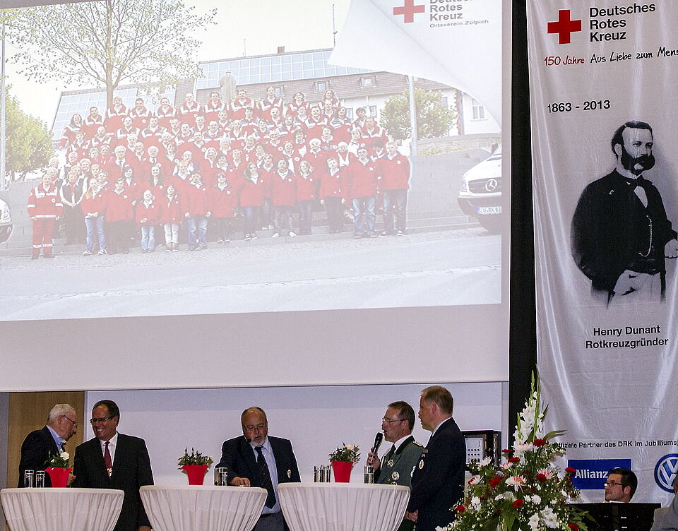 Hauptredner war Dr. Volkmar Schön, der dem 171 aktive und 830 Fördermitglieder starken Ortsverein die Glückwünsche des Rotkreuz-Generalsekretariates Berlin überbrachte. Der Mann, der wie Lothar Henrich schon als Junge beim Jugendrotkreuz anfing und sich langsam, aber zielstrebig an immer größer werdende Aufgaben herantraute, verstand es dabei, Rotkreuzeinsätze in Kriegs- und Krisengebieten der ganzen Welt und die Arbeit der Rotkreuzler vor Ort in Zülpich und Umgebung in Verbindung zu bringen.