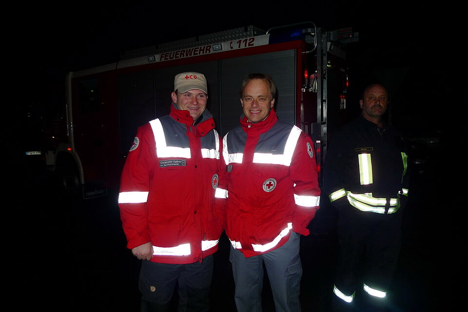 Bild DRK SP | Gute Zusammenarbeit zwischen den verschiedenen Einsatzkräften ist das Ah und Oh bei einem Einsatz. Hier sowohl zwischen Rotkreuzlern und Feuerwehr...