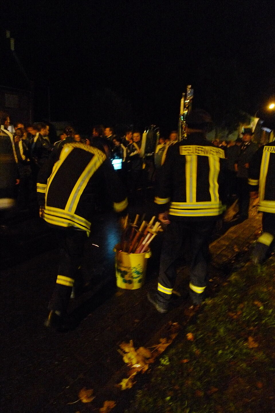Bild DRK SP | Abgesichert von der Feuerwehr, werden die brennenden Fackeln gelöscht und entsorgt.