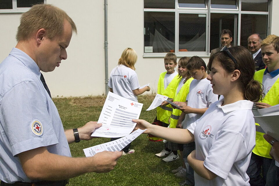 Gerhard Ohliger, Leiter der Zülpicher Förderschule, und Konrektorin Edeltraud Lorenzen betonten, dass die Schulung und Ernennung zum Schulsanitäter auch für das Selbstbewusstsein ihrer Schützlinge sehr wertvoll seien. Die Zusammenarbeit mit dem Roten Kreuz lief so gut, dass mehrere Schüler gleich zum Jugendrotkreuz gekommen sind. Lorenzen: „Eltern legen oft sehr großen Wert auf Rechnen oder Schreiben, auch an den Regelschulen. Aber das nützt im Notfall nichts, da sind soziale Kompetenzen gefragt.“