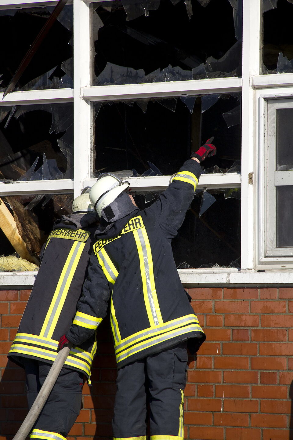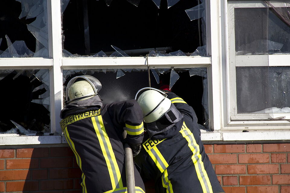 Bild DRK JS | Harte Arbeit am Strahlrohr.