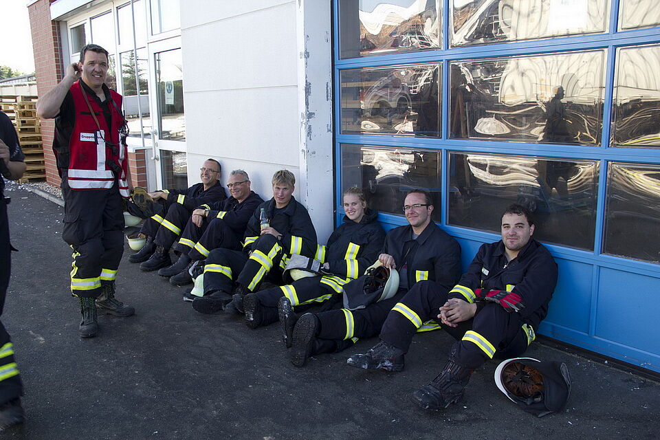 Bild DRK JS | Zuerst mal geschafft - die Feuerwehrfrauen sind immer vorne mit dabei.