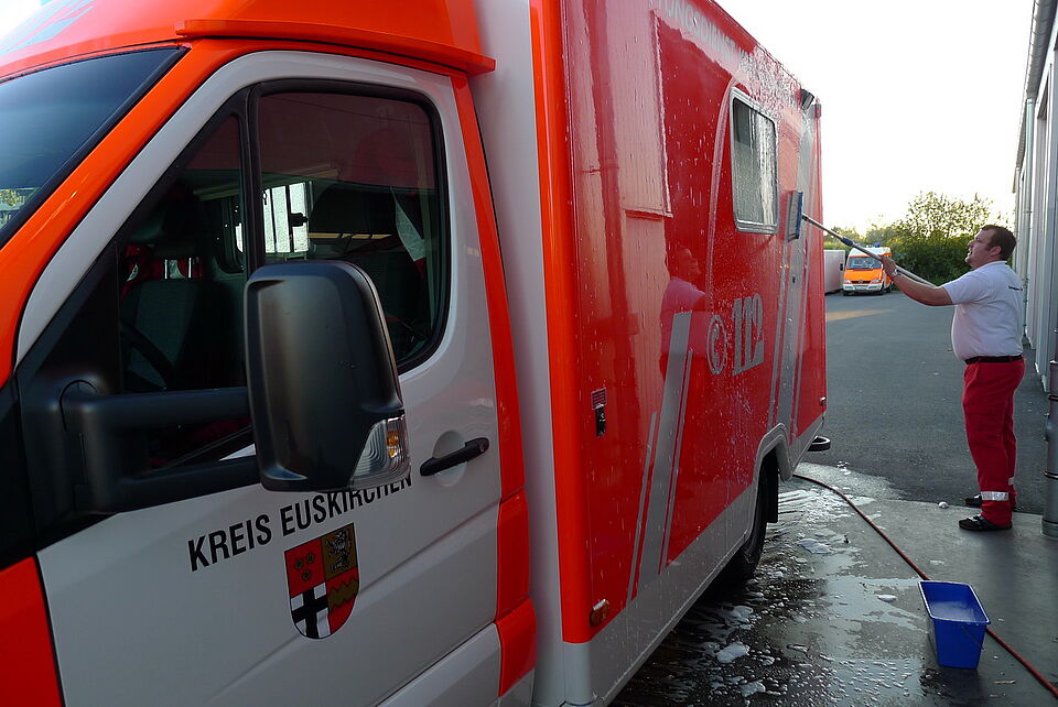 Bild DRK ZR | Während in Euskirchen einer der eingesetzten Rettungswagen schon wieder gereinigt wird...