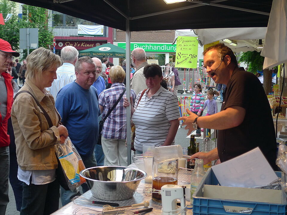 Die Innenstadt bot traditionsgemäß wieder diverse Verkaufsstände mit Spielsachen, Antiquitäten und allerlei Kleinkram. Die Zülpicher Geschäfte informierten über ihr Angebot und auf dem Zülpicher Marktplatz fand erstmals ein Bubble-Football Match statt.
