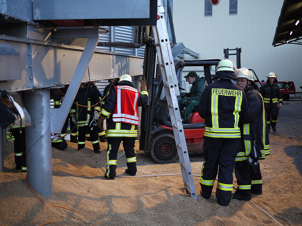 Bild DRK ZR | Die Wehrmänner am Rande des Getreidesilos.
