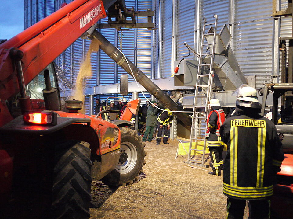 Der Einsatz beim Schwelbrand im Getreidesilo nimmt kein Ende.