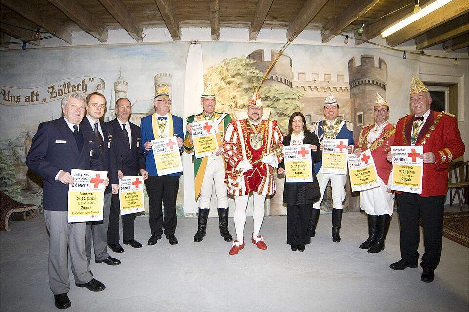 Heinen: „Auch wenn gefeiert wird, gibt es Notoperationen, Unfälle, dringende Krebstherapien. Für all diese lebensbedrohlichen Fälle werden Blutkonserven benötigt.“ Mit der tatkräftigen Hilfe der Karnevalisten vertraut er darauf, möglichst viele Zülpicher für die Blutspende am 20. Januar zu mobilisieren. Denn immer wieder und gerade zu den Feiertagen und in der Urlaubszeit werden Blutkonserven knapp.