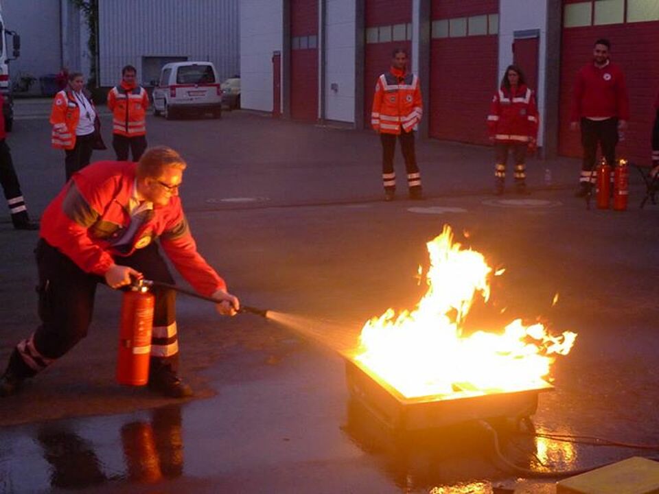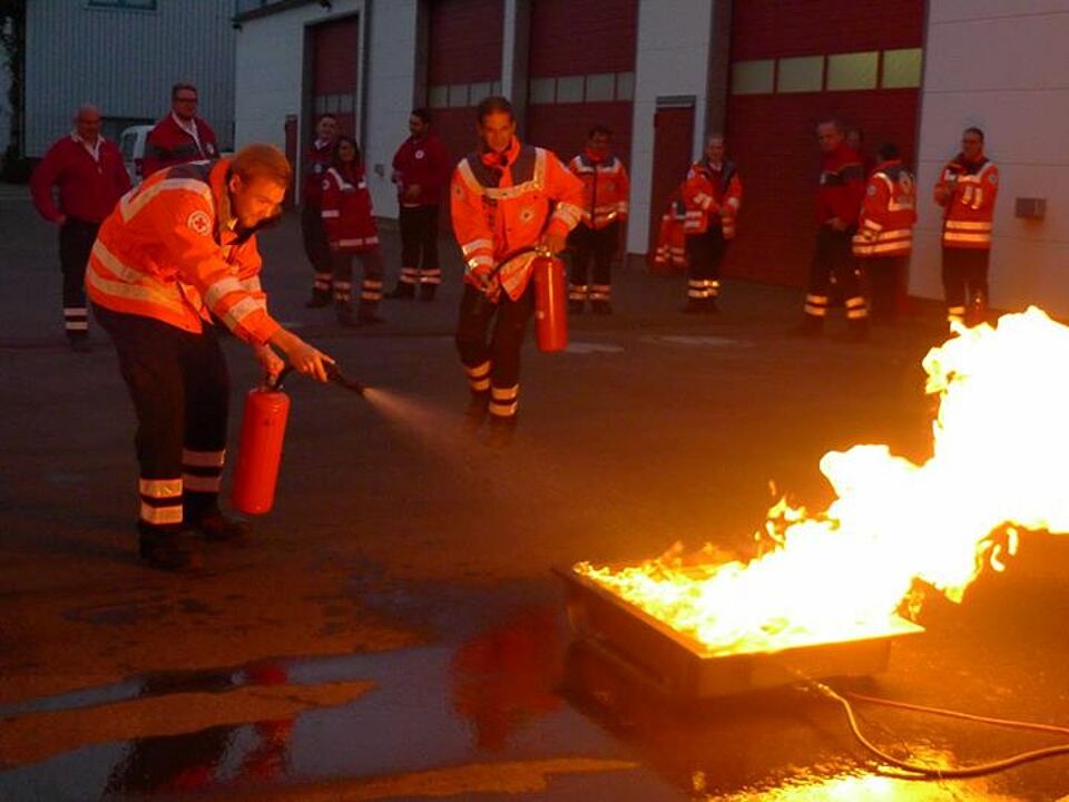 Gestern Abend fand bei den Zülpicher Rotkreuzlern der große Gemeinschaftsabend statt. Aus allen Fachbereichen waren Helfer eingeladen um an einer interessanten Fortbildung teilzunehmen. Die Führungskräfte hatten sich nämlich diesmal etwas besonderes als Fortbildungsthema ausgedacht. Gemeinsam mit Christoph Masche und Alex Nachbar von der Zülpicher Löschgruppe wurden die Helfer u.a. in die Themen Vorbeugender Brandschutz, Brandschutzklassen- und arten, Funktionen der verschiedenen Feuerlöscher, Brandbekämpfung u.v.m. eingewiesen.