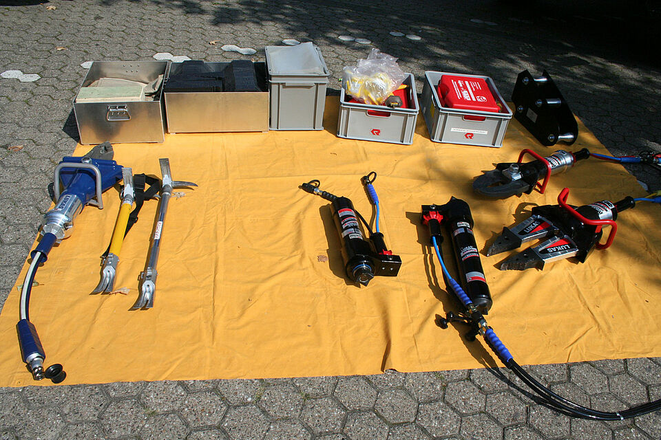Bild DRK KD | Kein Uhrmacherwerkzeug, das die Feuerwehr hier ausgebreitet hat. Damit ist sie in der Lage, den Rettungskräften auch bei stark deformierten Kraftfahrzeugen schnell Zugang zu den Fahrzeuginsassen zu verschaffen.