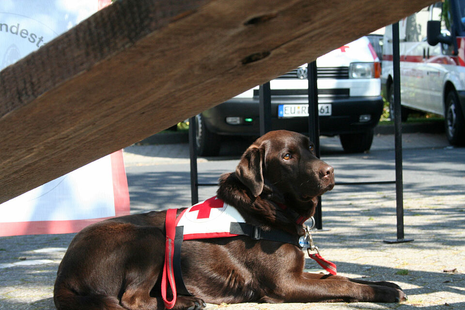 Bild DRK KD | Geduldig wartet dieser treue Gefährte der Kaller Hundestaffel des Roten Kreuzes auf seinen Einsatz.