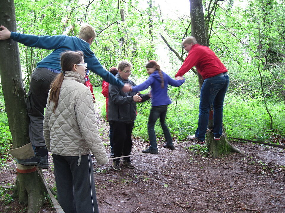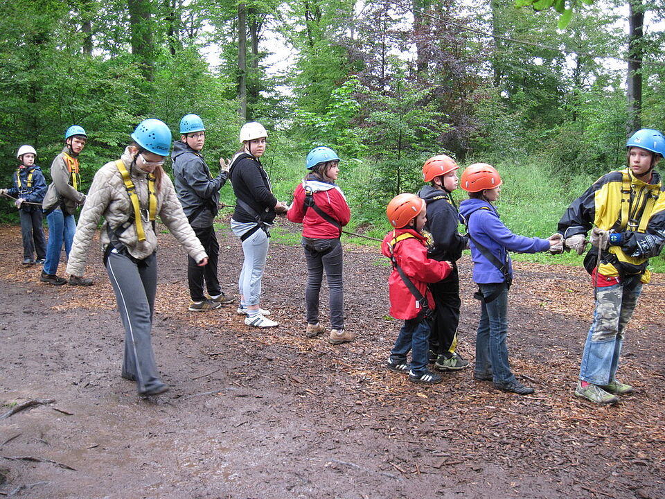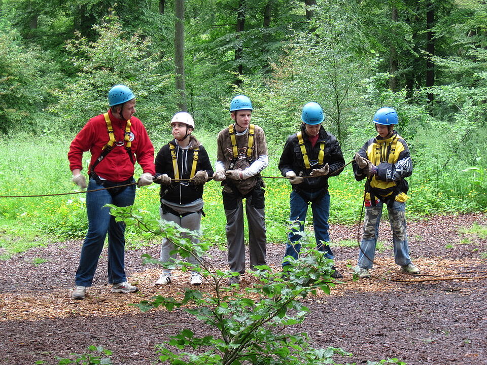 Zülpich - Dank der tollen Einweisung und Unterstützung von Dipl.-Sportwissenschaftler Markus Berg hatten wir alle viel Spaß. Schnell wurde schon bei der ersten Aktion klar, dass ohne Teamarbeit die gestellte Aufgabe nicht gelöst werden konnte. Also wurde beratschlagt, wie man sich am besten positioniert und schon lief es wie am Schnürchen. Die nächsten beiden Aufgaben waren dann schon eine Kleinigkeit. Alle zogen am gleichen Strang, egal ob man einen Baumstamm bis auf 10m Höhe erklimmt oder zum Schaukeln auf luftige 14m Höhe gezogen worden.