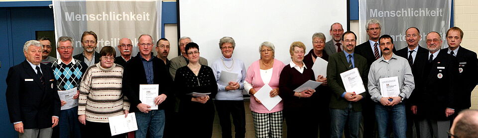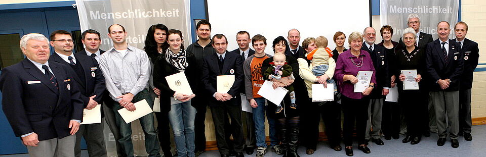 Auch die Zülpicher entsendeten eine Schnelleinsatztruppe zur Massenpanik bei der Duisburger Love Parade im Juli des vergangenen Jahres. Besonders geehrt wurden für ihren Einsatz dort Daniel Heitmann, Bruno Kremer, Oliver Märzke, Daniel Böser, Laura Keidies, Timo Prinz, Susanne Mette, Katrin Erden, Frank Schultes, Natalie Stoeveken, Bastian Lehmann und Stephanie Koudelka.