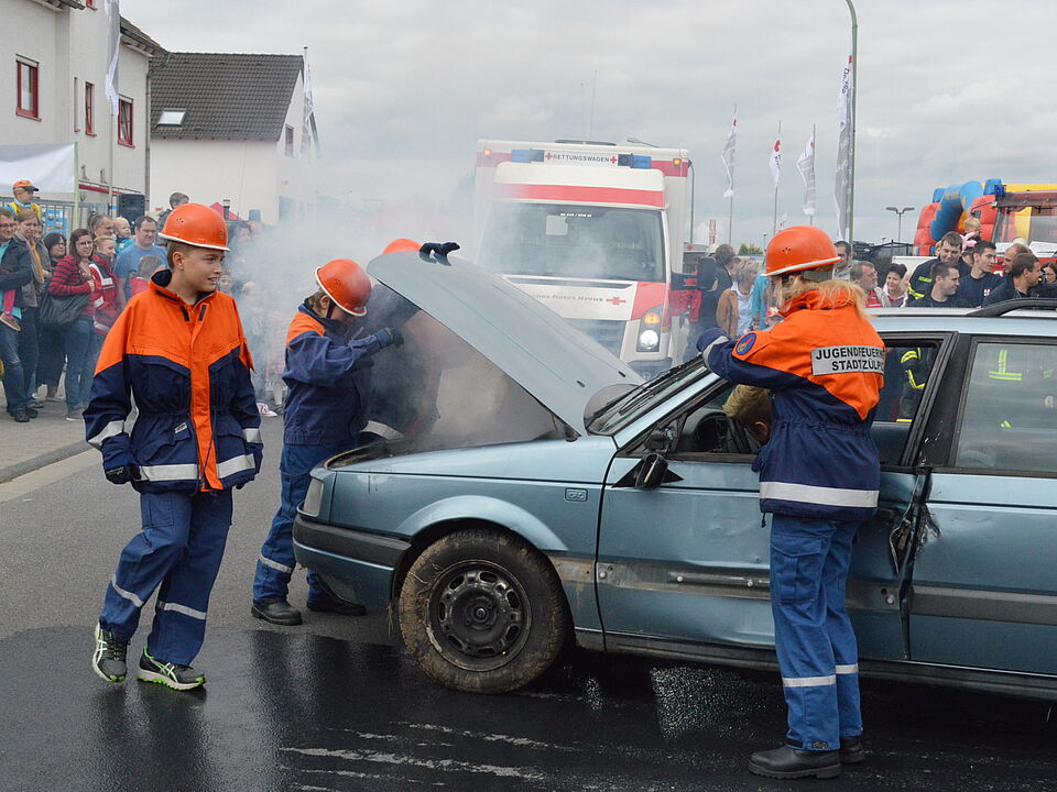 In Scharen zog ein realistisch nachgestellter Autounfall die Zuschauer an. Dabei stellten die Nachwuchshelfer des Jugendrotkreuzes unter Anleitung von Ausbilder Timo Prinz gemeinsam mit der Jugendfeuerwehr unter Beweis, dass auch sie im Ernstfall wissen, was zu tun ist. Auch bei der Einsatzübung der erwachsenen Rotkreuzler konnten diese sich auf die Unterstützung der Freiwilligen Feuerwehr Zülpich verlassen.