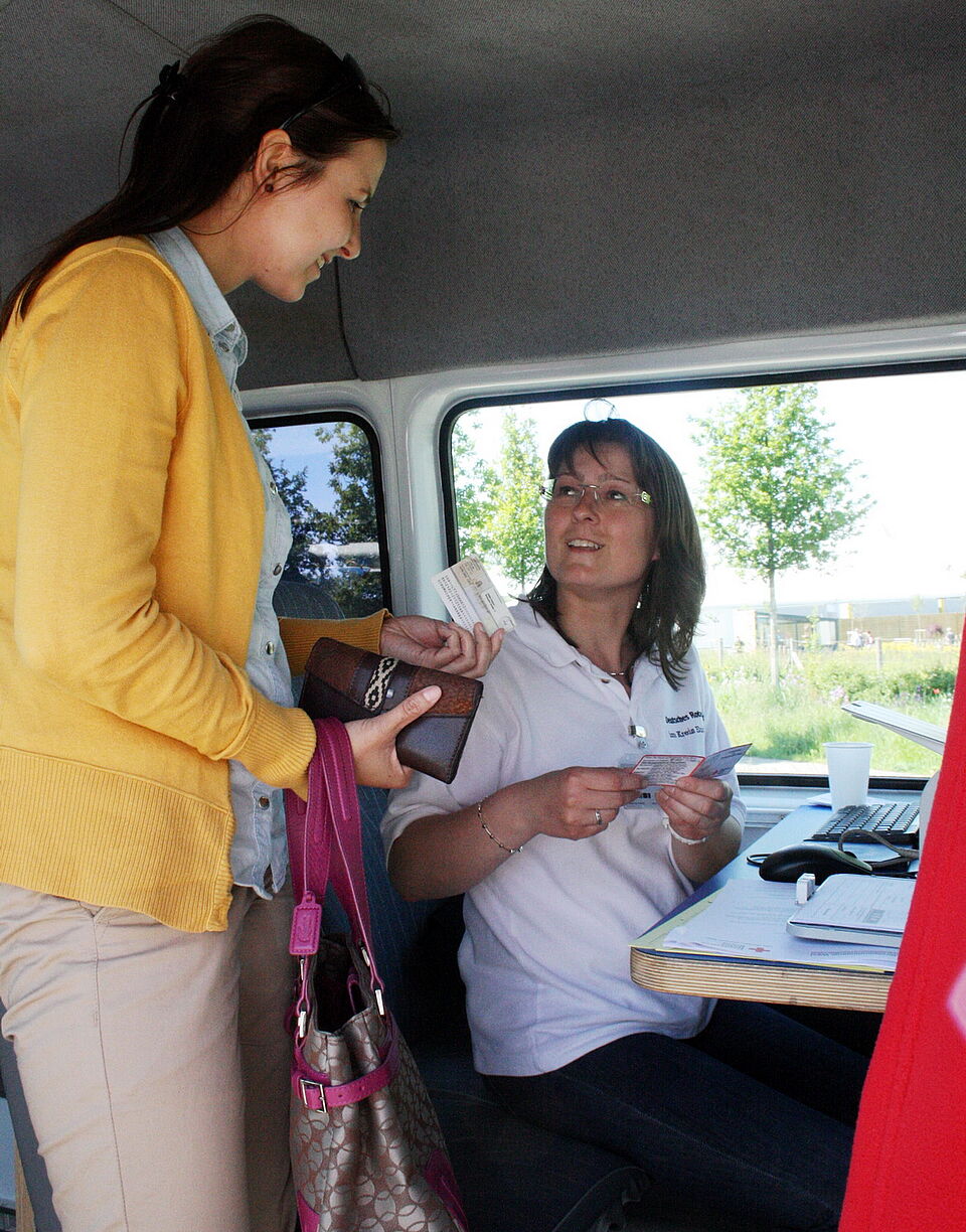Regelmäßig steht das Blutspendemobil auf dem Zülpicher Straßenmarkt. „Den Termin lassen wir diesmal ausfallen, da das Straßenfest bereits in zwei Wochen stattfindet und wir heute hier vertreten sind“, so Heinen. Ganz begeistert von der Idee, ihre Blutspende mit einem Besuch der Landesgartenschau verbinden zu können, zeigte sich Andrea Schumacher. Die Füssenicherin ist seit Jahren Blutspenderin. „Aber es ist das erste Mal, dass ich in Zülpich zur Blutspende gehe, weil mir die Idee gefällt, dass das Mobil hier an so einem schönen Fleckchen steht“, sagte Andrea Schumacher und übergab ihren Spenderausweis Sabine Haas vom DRK.