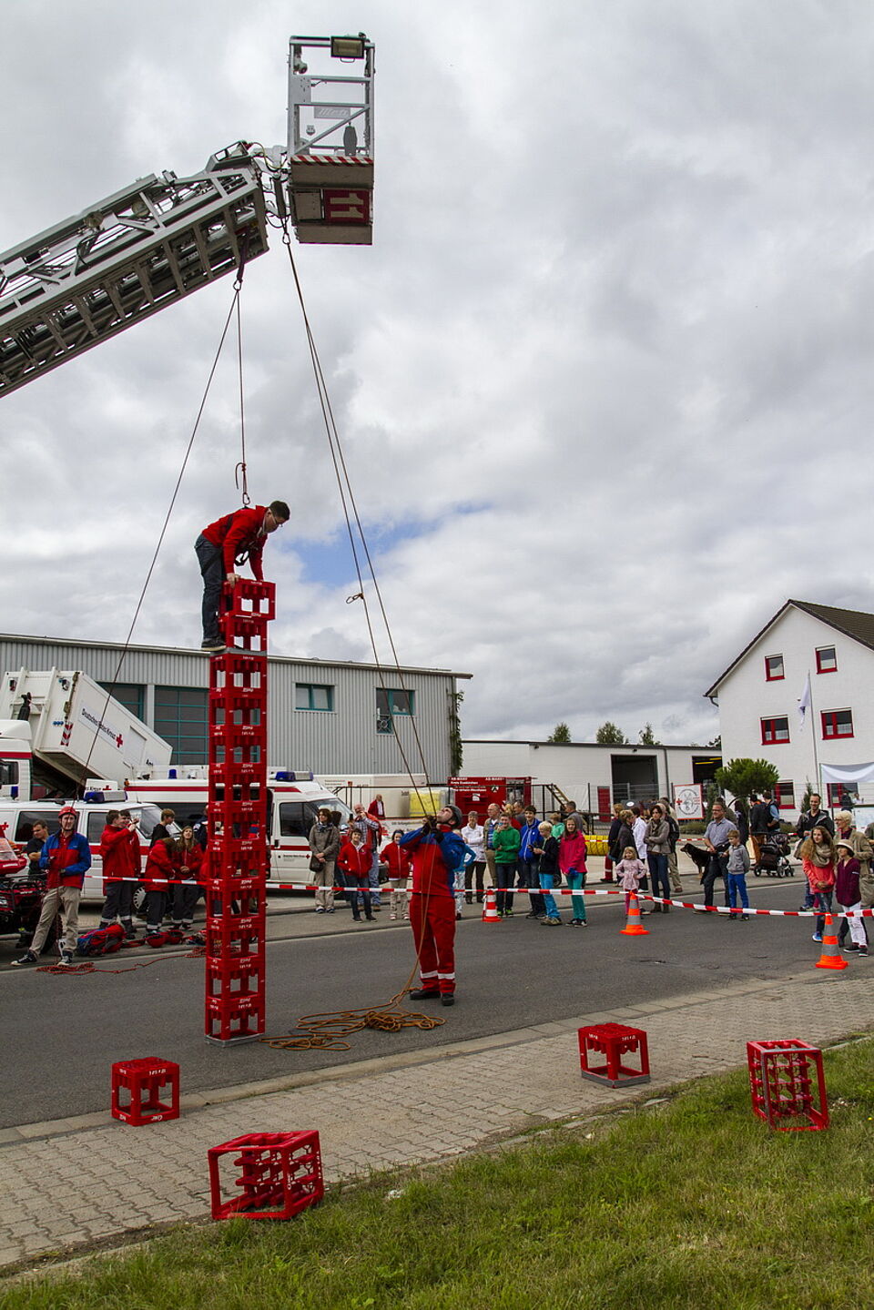 Bild DRK JS | Kistenklettern mit Hilfe der Zülpicher Drehleiter und der Rotkreuz - Bergwacht