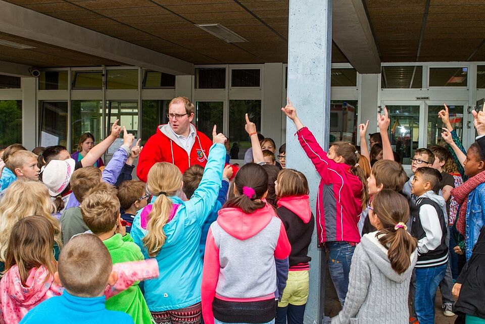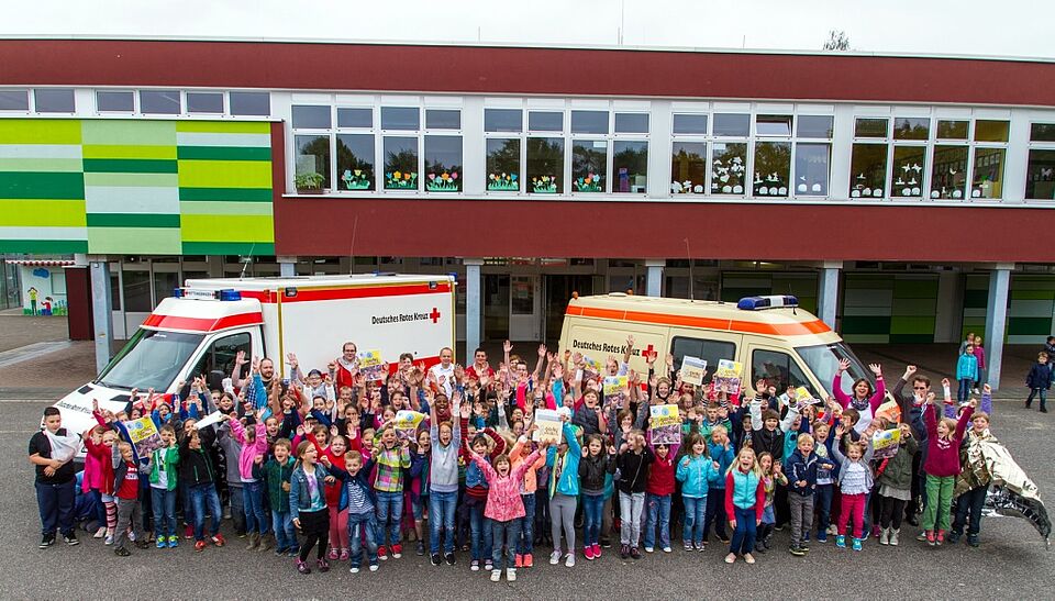 Ein weiterer wichtiger Nebenaspekt der frühen Beschäftigung mit dem Thema Erste Hilfe ist der Abbau von Ängsten, betont Simon Jägersküpper, ein Effekt, der bis ins Erwachsenenalter nachwirke. „Wer schon früh einmal einen Rettungswagen von innen gesehen hat und mit den Abläufen vertraut ist, hat auch später weniger Berührungsängste, wenn er selbst Erste Hilfe leisten muss oder aber sich selbst in einer Notsituation befindet.“ Traurig, aber wahr sei, so Jägersküpper, dass in Deutschland nur die wenigsten Erste Hilfe leisten könnten. Nicht zuletzt erhofft sich der Kreisverband von der Zusammenarbeit mit der Grundschule eine Nachwuchswerbung für das Jugendrotkreuz.
