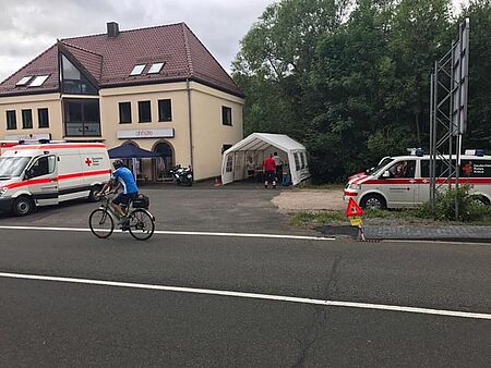 Heute betreut der Ortsverein Blankenheim mit tatkräftiger Unterstützung vom Ortsverein Kall mit insgesamt 35 ehrenamtlichen Helfern die Veranstaltung Tour de Ahrtal in der Gemeinde Blankenheim. Viele Fahrradfahrer haben sich auch nicht durch die kurzen Schauer abschrecken lassen. Wir sind in Blankenheim, Ahrhütte und Ahrdorf vertreten.