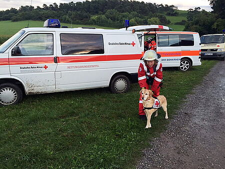 Schleiden - Die Klasse 6c ist ganz gespannt. Denn heute, am 10.09.2015, kommt ein Rettungshund der Rettungshundestaffel Kall (die Begleiterin heißt Manuela) ans Clara-Fey-Gymnasium zu Besuch. In der 3. Stunde ist es endlich soweit. Frau Becker geht mit der 6c zum Waldstadion (Sportplatz), wo auch schon der Flat Coated Retriever-Mischling namens Ben mit Manuela, seinem Frauchen, auf uns wartet.