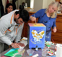 Beim jüngsten Begegnungscafé der Flüchtlingshilfe Kall drehte sich alles um neue Kistentrommeln für das internationale Musikprojekt Kalimba – Zusammenarbeit mit dem DRK-Projekt „You Are Welcome“