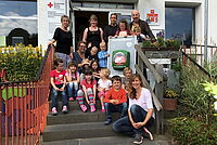 Team und Kinder der Rotkreuz-Kindertagesstätte Weilerswist bedankten sich bei der Kreissparkasse Euskirchen für mehrfache Unterstützung