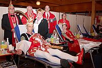 Tolles Ergebnis beim närrischen Aderlass: 135 Blutspender, davon 17 Erstspender – Kommerns Narrenherrscher Thomas I. und Nicole I. (Bank) mussten Prinzenblutspende abbrechen – Auch Flüchtlinge kamen,…