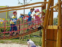 Spielplatz der Rotkreuz-Kita „Abenteuerland“ eröffnet – Spieleparadies mit Piratenschiff, Wasserstelle und Trampolin – Eigener Bereich speziell für Kinder unter drei Jahren