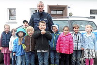 Polizisten bereiten Vorschüler des Rotkreuz-Kindergartens Ripsdorf für den Schulweg auf Gefahren im Straßenverkehr vor