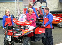 Angela Merkel und Innenminister Thomas de Maizière danken ehrenamtlichen Helfern für Einsatz bei der Flutkatastrophe 2013 – Stellvertretend für Zehntausende war auch die Rotkreuz-Bergwacht aus dem…