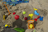 Ein Tag am Meer - Endlich mal richtig Sonne und halbwegs angenehme Temperaturen ermöglichen der "Freizeitlern" einen Tag am Meer - mit Sandburgen, Wellentauchen und Teamer einbuddeln.