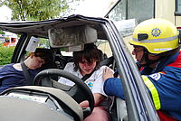 Viele "Verletzte" befanden sich am Sonntag auf dem Gelände zwischen der Kreisverwaltung und dem Rotkreuz-Zentrum. "Verkehrsunfall mit zwei PKW und einem Bus!" - so lautete das Szenario für die…