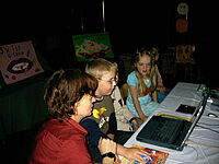 Beim Workshop im Kindergarten Oberhausen wurden Computer und Video-Beamer genutzt, um den „Pänz“ etwas über gesunde Ernährung beizubringen
