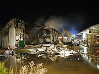 Beim Brand einer Lagerhalle in Dom-Esch waren sie seit Samstagabend im Dauereinsatz.