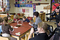 Initiative „Haus der kleinen Forscher“ bringt Naturwissenschaft schon Vorschulkindern näher - Im Rotkreuz-Kindergarten werden Kinder für eine Anleitungs-DVD beim Experimentieren gefilmt…