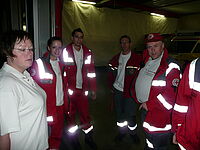 Es wird immer enger auf dem Gelände, mittlerweile über 1.600 Personen, aber endlich kommt der 2. Feldkochherd mit weiteren Rotkreuzhelfern aus der Eifel.
