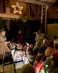 Blankenheim | Kids der DRK-Kita „die kleinen Strolche“ Dollendorf begleiteten Maria und Josef auf der Suche nach einem sicheren Stall – Untermalt von Geschichten, Schauspiel und…