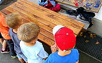 Rotkreuz-Kita „Kastanienlaube“ Ripsdorf hat nun neben eigener „Tankstelle“ und Hochbeeten auch eine „Matschküche“ und eine massive Sitzgruppe für ihren Hof