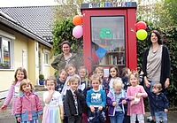 Alte Telefonzelle wird am Rotkreuz-Kindergarten „Die kleinen Strolche“ in Dollendorf zur Selbstbedienungs-Leihbücherei – Umweltbewusstsein und soziales Miteinander