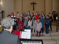 Volle Kirche, großer Bahnhof für die scheidende katholische Kindergartenleiterin Marlies Lottermoser (63) in St. Johannes Baptist – Zwei Generationen bestritten das Programm – Bürgermeister Dr.…