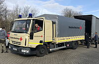 „Rumänien Sunshine“ verlädt unter anderem mit Rotkreuz-Hilfe 40 Tonner mit Material für Kriegsopfer und Flüchtlinge aus der Ukraine