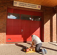 Rettungsdienstmitarbeiter organisiert Haussammlung für Herzrhythmus-Retter am Feuerwehrgerätehaus Kleinbüllesheim