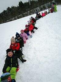 DRK-Bewegungskindertagesstätte „Die kleinen Strolche“ in Dollendorf versuchte auch in der weißen Pracht ihrem Ruf gerecht zu werden